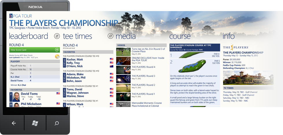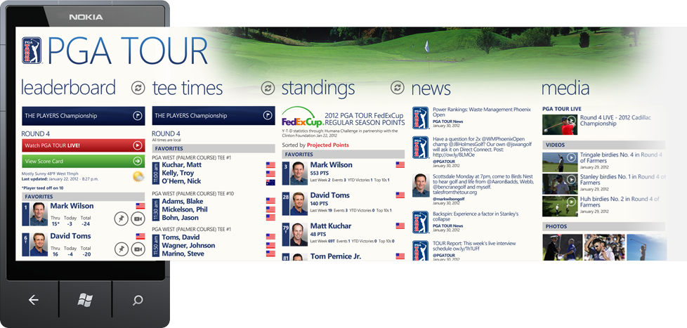 I collaborated with the Creative Director at Miomni Ltd UK to design the UI/UX system for the US PGA Tour app, a flagship project in partnership with Microsoft. As one of the inaugural apps for the new Windows Phone OS, we drew inspiration from Microsoft’s innovative UI system workshops and incorporated its principles into our design. Through close collaboration with the PGA Tour team in Florida, we ensured the app met their exacting standards, delivering a unique and engaging experience for golf fans worldwide. The PGA Tour’s reliance on technology to enhance fan experiences made this project an exciting opportunity to showcase my UI/UX expertise.