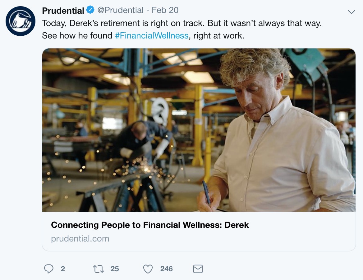 While in-house at Prudential Financial, my team and I created a multimedia campaign to help American workers achieve financial wellness through Prudential Insurance's comprehensive benefits, insurance and retirement packages. The campaign aimed to equip companies and their employees with the necessary tools and structure to drive employee action, resulting in better financial security and an improved quality of life. By participating in engaging experiences, workers could take control of their financial futures. The creative team, partnering with production company Alkemy X and director Bernie Roux, devised a unique reverse effect to show how two workers arrived at a better state of financial security. The campaign showcased the benefits of Prudential's solutions, positioning the company as a trusted partner in employee financial wellness.